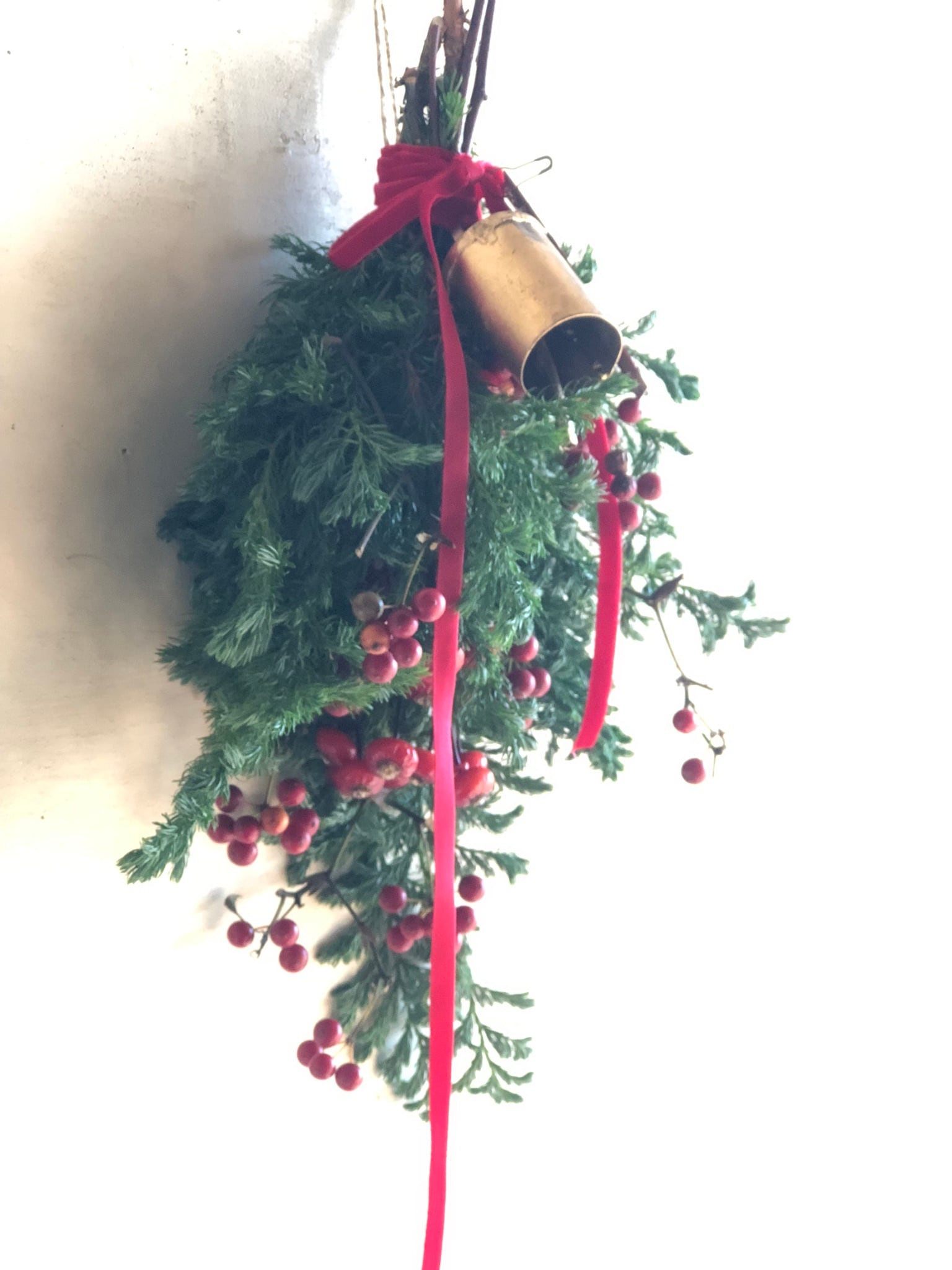 花材:コニファーブルーバード、サンキライ、野バラの実